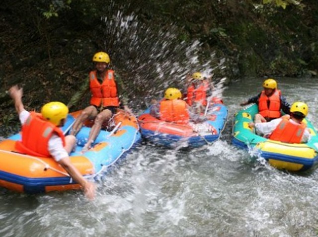 幽谷漂流河段长5公里,落差143米,全程漂流需时约90多分钟,最惊险一处为“尖叫一线天”,其落差达10米,两边全是直耸入云的山石,仅能容一条漂流艇通过。夏日炎炎,遮天蔽日的绿树在漂流河道上形成一道天然的屏障,让身在其中的游人感觉无比清凉。漂流源头隐藏在树荫深处,整个漂流地段都隐藏在原始森林中,这也是羊角山漂流又名"地窟漂流"的由来。版权所有山东聊城聊之旅国际旅行社有限公司,转载必究!景区有符合安全规定的漂流河道、安全通道、防护栏、漂流艇等设施,提供救生衣、安全帽等设备;沿途有经过专业培训的河道服务员、救生员、救护医生提供专业的安全保障。景区投资“中国首创”的电子全程抓拍系统,记录下80多处游客快乐的一瞬间。