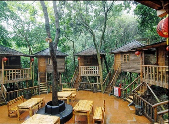 树屋村,上古人类的家,是我们人类祖先还未步出森林前赖以遮风挡雨、防御野兽侵犯的窝。如今,九州驿站的树屋村,在还原古人类居住文化的特征上,融入了现代的养生休闲文化而成为驿站的重要特征。身处树屋村,最能感动人的除了古朴而又独特的住宿设施外,感觉更多的是茂盛森林里的原始气息和土地的芳香,与隔窗相望的雀鸟、昆虫、松鼠等生命为伴才是建造树屋、入住树屋的真正意义。