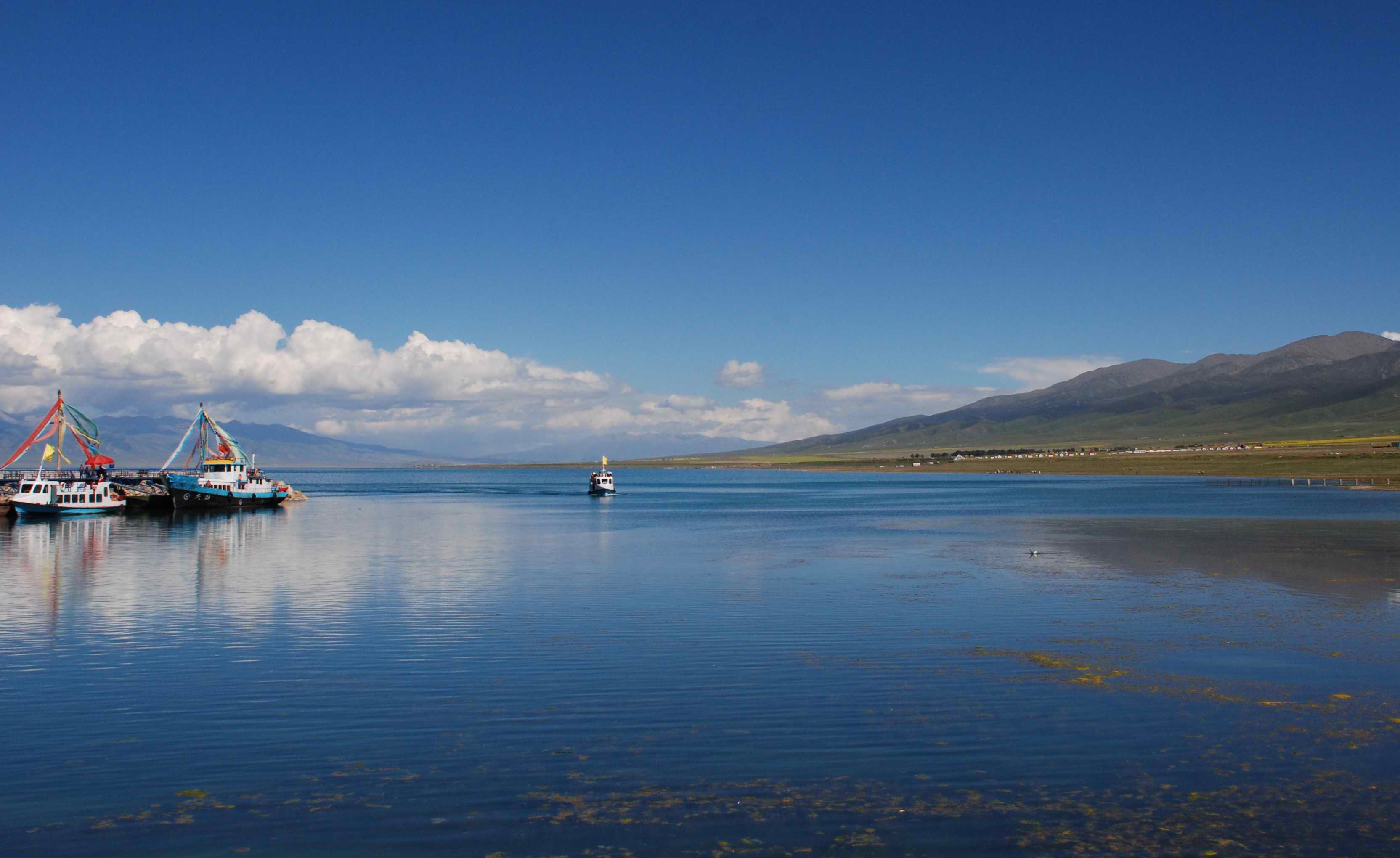 2006年10月25日,由中国国家地理杂志社为青海湖颁发了“中国最美的五大湖”证书和奖牌。烟波浩淼、碧波连天的青海湖就像一盏巨大的翡翠玉盘,镶嵌在青藏高原东北部的高山、草原间,构成了一幅群山、湖水、草原相映成趣的壮美风光和绮丽景色。青海湖拥有4300平方公里的辽阔水域,天水之间水鸟翔集,蓝天白云和湖光山色相互辉映。