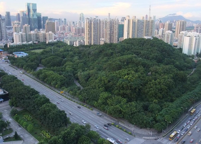 弈园景区,南依山体北临大草坪,是园内景点的点睛之笔,外旷内幽。外广场以疏林缓坡为主,给游人提供一个运动休闲、游戏的大草坪。内庭则清幽、雅致,步移景异,别有一番天地。山顶凉亭,沿着公园登山道,可到达山顶的大小三个观景亭:“皇岗亭”、“积翠亭”、“锦绣亭”,登顶远望,小憩片刻,凉风