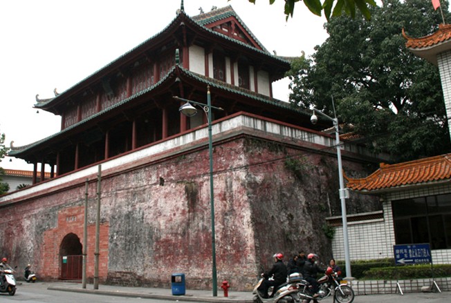 肇庆丽谯楼是古代肇庆府衙的所在地,为古代肇庆的政治中心,建于宋重和元年(118年)是为供奉宋徽宗赵佶亲笔御书“肇庆府”而建,故称“卸书楼”,明代改为“丽谯楼”,明末,朱由榔在肇庆建都抗清,在此楼登基,改作“永明宫”。