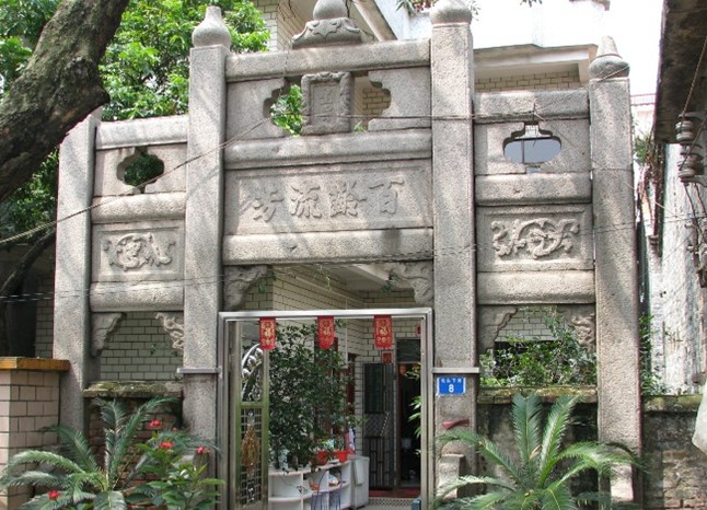 百龄流芳坊位于广东省中山巿黄圃镇镇一村,建于清代道光十八年(1838年)。为四柱三间通天式牌坊,以花岗石雕凿构筑,高5米。正面主间上竖刻“圣旨”(阳刻)二字,下方横匾阳刻:“百龄流芳”四字,上款阴刻“道光戊戌”,下款阴刻“何高启立”。背面上竖刻“恩荣”(阳刻)二字,下方横匾阴刻:“升平人瑞”四字。版权所有山东聊城聊之旅国际旅行社有限公司,转载必究!牌坊柱下镶嵌抱鼓石。现保存尚好。