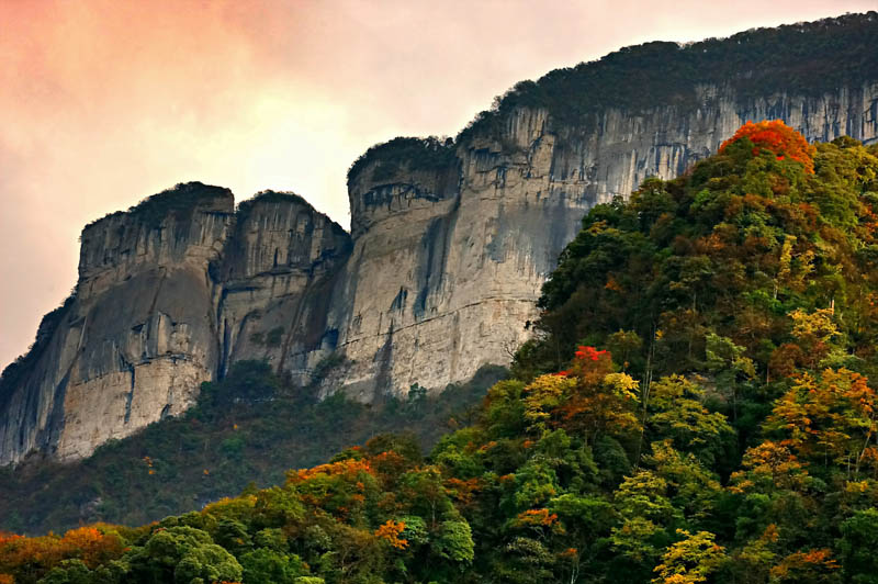 10、石门宫:几座十余米宽的石柱托起一座巨大山峰,形成数道雄奇险峻的巨型石门,宏伟壮观,震撼心魄。
