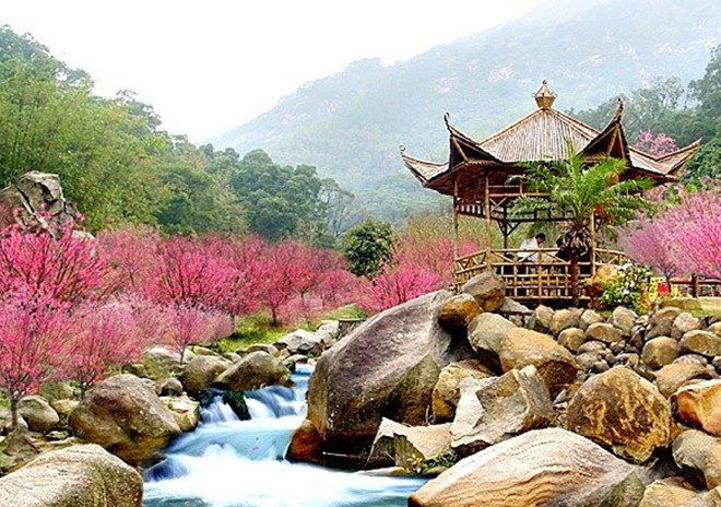 春季:轻纱缭绕,春暖花开,桃花、杜鹃花、玉棠春等相继盛开。春节期间举办桃花节,为珠海唯一观赏桃花盛会,若遇上烟雨天气,宛若仙境降临,美不胜收。