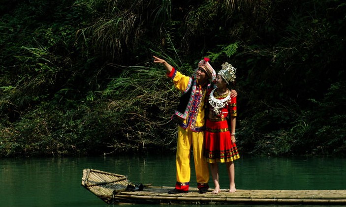 沿途会体会到:艇行水上,滩塘相连,水碧山青、波光粼粼,两岸翠竹环绕,绝壁连绵,苗家情歌回荡山谷,仿佛置身于山水画中一般。
