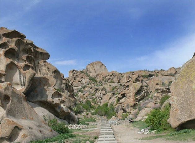 一条国防公路从博乐出发,呈西南--东偏北走向贯穿其中一条较宽山谷--秀女溪谷。进入谷内,有一圆形开阔之处,放眼望去,似用巨石砌成的古堡。版权所有聊城聊之旅国际旅行社有限公司,转载必究!顶部之石,如炮台,似望楼;石面之窍,既像独目嘹望之孔,换个角度,又似天降水滴,故名为“生命之源”。真可谓移步换景!虽处于干旱半干旱地带,但是怪石峪黄昏后氤氲多云,山谷底有泉流,石石皆有苔藓,新长者,呈现嫩绿;枯萎者,如涂赭黄;成熟的,似贴黑面。各色相间,布于石上,若古堡斑斓多彩的装饰,竞显贵者之豪华,王者之气势。