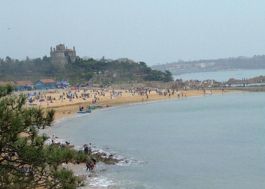 花石楼的旁边就是第二海水浴场,位于汇泉湾东侧的太平湾内。德占青岛之初,德国总督常骑马到此狩猎,下海游泳,以后辟为海水浴场。中国政府收回青岛后定名为"第二海水浴场",因地处太平湾,又称"太平角海水浴场"。