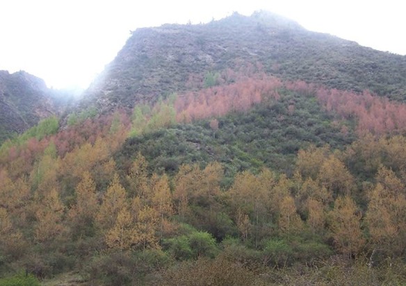 阿姨山海拔3698米,山体轻盈秀丽,如亭亭玉立之少女,山上遍布松、杨、灌木、葱郁滴翠。