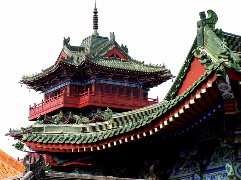 中轴线上的第三个佛殿叫罗汉殿,八角造型,俗称“八角琉璃殿”,其造型独特,在中国佛教寺院中可谓独一无二。该殿为清乾隆年所建,占地828平方米,由游廊殿、天井院和中心亭三部分组成。