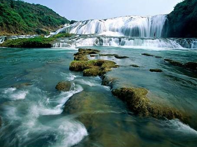 银练坠瀑布在天星桥景区内,离黄果树瀑布只有7公里。银练坠瀑布银练坠滩瀑布位于螺丝滩瀑布下游2公里处,由许多小瀑组成,总高40余米。周围有天星桥风景区,区内有天星洞、水上石林等景点。银练坠滩瀑布是景区内形态最美的瀑布,水围圆石而下,宛如条条银练坠入深潭,绚丽无比。