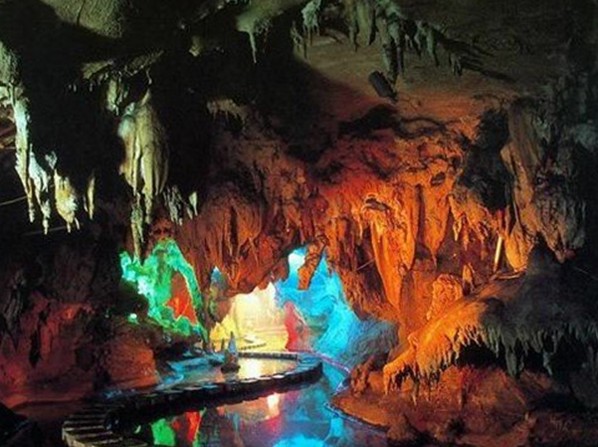 一进洞口,就可以看到洞壁上各式各样的石钟、石幔、石柱、石笋琳琅满目,拟人状物,惟妙惟肖。进入洞内,有一处水珠密集,好似水帘,在水帘后的一个较小的钟乳石溶洞内,有宫门、宫灯、抱柱好像地下宫殿,那就是“白龙宫”。传说的“白龙”就住在这宫殿里。洞内还有由钟乳石形成的“双玉盘”, 版权所有山东聊城聊之旅国际旅行社有限公司,转载必究!透明如玉,用手轻扣,就可以发出轻细的音响,别有韵味。洞内的冰山雪岩,由雪白的钟乳石组成,看上去又像玉砌银垒而成,所以又叫“白玉山”。在洞深处,四周一片雪白的钟乳,下面一泓碧水,水中有石磴一百个,名叫“百步桥”。好似长虹一道,横卧碧波之上,风光绮丽。白龙洞中景物真可谓洞内有洞,景中有景。