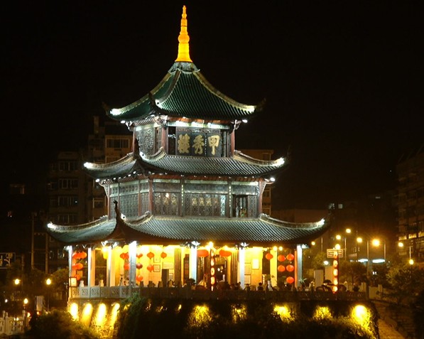 【1】甲秀楼,中国古代名楼,坐落在中国贵州省贵阳市城南的南明河上,以河中一块巨石为基而建。始建于明,后楼毁重建,改名“来凤阁”。清代多次重修,并恢复原名。甲秀楼建在城南涵碧潭鳌矶石上。从古到今,甲秀楼历经六次大规模的修葺和400年的风吹雨打,依然矗立不倒,见证了筑城400年历史。