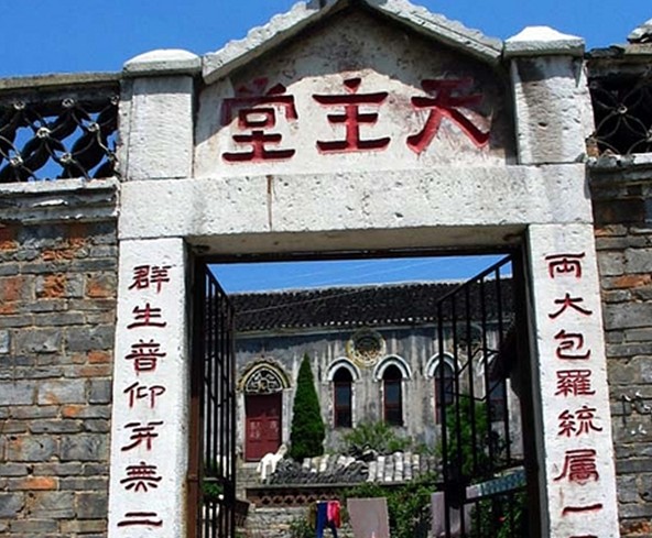 其实小镇有特色且有着深厚历史背景的建筑还有很多。爬上镇边一侧不算太高的山坡(当地人称黄家坡)可以鸟瞰小镇的全景,版权所有山东聊城聊之旅国际旅行社有限公司,转载必究!由于小镇并不是建造在一个平面上而是建造在高低不平的山坡面上,所以从高处望去,整个小镇的格局给人一种在别的古镇中难以看到的立体美感。寺庙、城门,这些主体建筑在袅袅炊烟缭绕中屹立着,向人们诉说着一个又一个的古老故事。让人诧异的是,小镇中除了众多的寺庙,竟然还保留着一座基督堂和一座天主堂。也就是说,小镇中既有佛教徒、又同样盛行天主教和基督教,无法得知的是这样的“三教并存”现象是如何在漫漫的历史长河中保留下来的,但据镇上人说,每每到了初一、十五、寺庙里的香火是不会断的,而周日到教堂做礼拜的人也是络绎不绝。而除了寺庙、教堂,镇上最有文化代表性的东西可能就是保存完好的古代牌坊,据说古镇原来是有8座石牌坊的,由于历史原因,现在只留下三座了,它们分别是北门外的“赵彩章百岁坊”、南门内的“赵伦理百岁坊”和靠近定广门的“周王氏媳妇刘氏节孝坊”,其中以节孝坊的建造最为大气,坊的上方甚至还镶嵌着圣旨立匾。更为戏剧化的是,代表西方文化的教堂就建在象征东方传统思想的节孝坊对面,高高尖顶屹立了百年之久,这种参差交错的不对称美以一种强烈的反差,被渲染到整个文化气氛中,所以在这里看似激烈的文化宗教冲突,却空前地融合起来,让人不得不感叹此弹丸之地内的文化包容性是多么神奇。