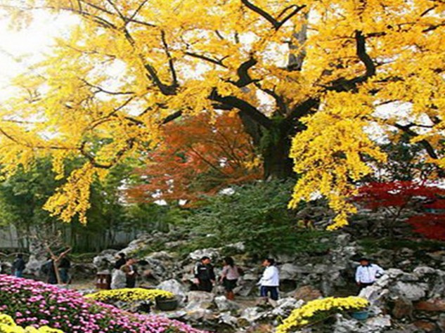 盘县古银杏风景名胜区位于安顺盘县城关镇35公里之石桥镇妥乐村,该景区面积约146平方公里,包括石桥乐民镇景区、水塘镇景区、城关景区、火铺镇景区。景区内生长着上千株古银杏树,最小的有300多岁,年长的达上千岁。专家认为,如此集中连片且与村寨融为一体的古银杏群落,在世界上十分罕见。当地政府正计划为此申报上海大世界吉尼斯记录。贵州省已经把盘县古银杏风景名胜区列为省级风景区。银杏树是3000万年前地球遗留下来的古植物, 人称“活化石”,银杏树的树形、叶片奇特、精巧, 四季分明,春天青翠,秋天金黄,其果实“白果’’可以入药,是不可多得的观赏树种。盘县古银杏风景名胜区内的银杏树极其独特。从小径、田埂、屋基下、石阶上,向四面八方伸展出来,把整个妥乐村托在了树根之上。夏日里层层叠叠的绿叶现在全变成了金黄色,落叶铺满了石板小径、黑瓦的房屋、收获后的稻田……就连村中清澈透明的小溪、溪上的小石桥,也被扇形的银杏叶装点成了金色。据介绍,出售银杏果实,是这当地村民的主要经济来源之一,因而村民们对古银杏树倍加爱惜。银杏全身是宝,版权所有山东聊城聊之旅国际旅行社有限公司,转载必究!果仁称“白果”,是珍贵的药物和不可多得的保健佐食佳品。从银杏叶中能提炼出治疗心血管病的药物。当地村里人多长寿,平均寿命70至80岁。景区内妥乐村最长寿的老人106岁,面色红润,每天喝二两酒,每顿吃2碗米饭、一碗肉、两个土豆。为了改善古银杏树的生态环境,当地政府计划搬出大约三分之二的村民,只保留古朴的木瓦房和少量村民。希望这个自然界留给人们的奇特村庄可以一直留存下去,为游人和当地人带去给多的享受。