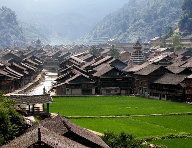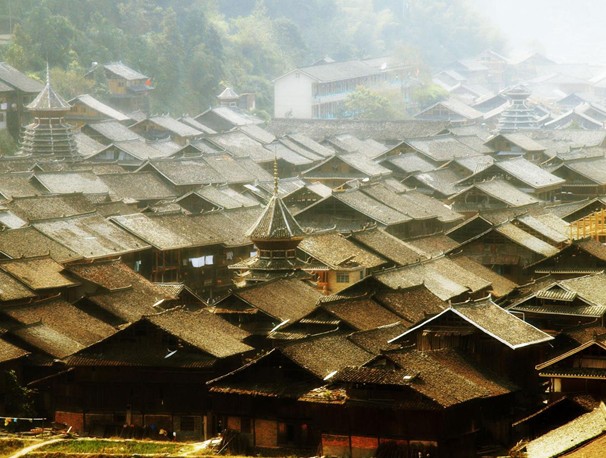 肇兴,旧称[肇洞],位于黎平县城南70公里,是全国最大的侗寨,有世界最大的侗寨鼓楼群。全寨居住3415人,聚居侗族3125人,全为陆性侗族,分为仁、义、礼、智、信五大房族,各自建有鼓楼、花桥,大小不一,高低不等,风格各异,别具匠心。寨子里杆栏式吊脚楼房,鳞次栉比,疏密有致,全用杉木建造。有众多的花桥、戏楼、歌坪、禾晾、谷仓、瓢井、侗民居中等建筑,布局紧凑,结构合理。寨上有侗歌队、侗戏班,每蓬节日,肇兴乡以及毗邻侗寨群众,欢聚鼓楼、歌坪,版权所有山东聊城聊之旅国际旅行社有限公司,转载必究!举行热情洋溢的大歌、踩歌堂、抬官人等传统活动。