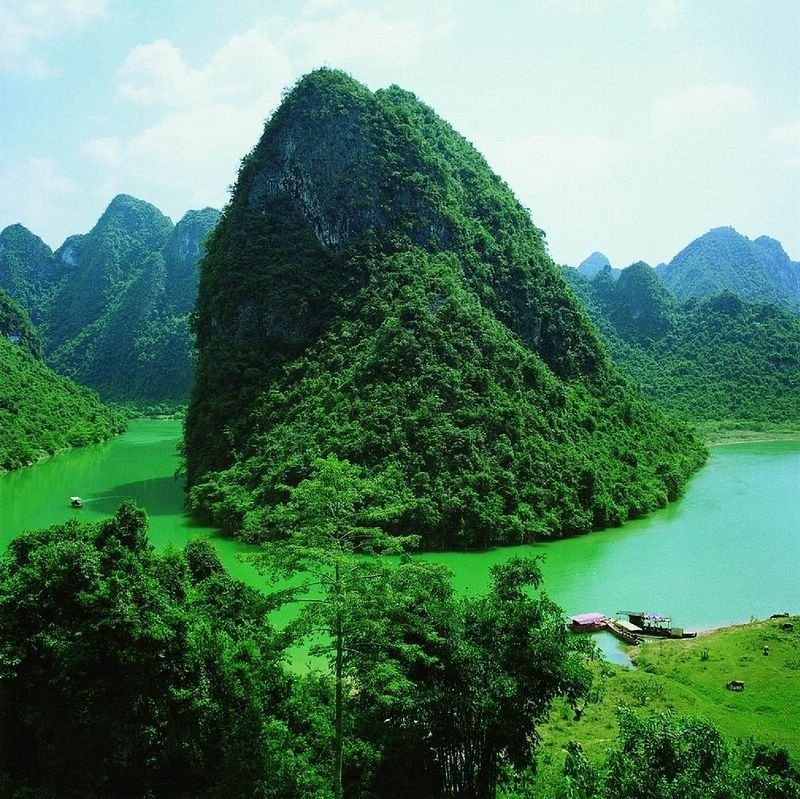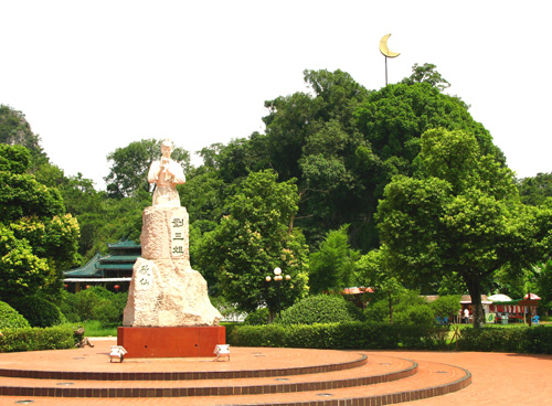刘三姐景观园 内有电影《刘三姐》主要镜头画面的修复再现。景区内游客们能亲睹刘三姐电影中的主要演员及我国著名电影导演苏里先生,还可亲身体验广西壮、侗、苗、瑶的民俗风情生活情趣。同时还能观赏到极罕见的夜景,壮观的大水幕,五彩缤纷的喷泉,弯弯的蓝月亮,迷人的梦幻歌圩,幽雅的恬静的踩月小径,可漫步入踩月洞,电影中的刘三姐激光塑像,让游客一饱眼福。进到刘三姐景观园,让您憧憬山村月夜的风情,带走三姐的问候,留下你一片片深深的情谊……