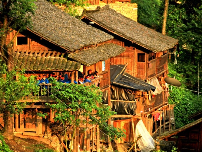 榕江县侗家村寨大多坐落在古树参天,风光秀丽,竹林掩映,依山傍水的地方。房屋多为二层或三层不等的木质结构吊脚楼,吊脚楼一般依山势开辟成两层地基,下层屋基柱脚须用筒柱支撑,有的因偏厦建在地基之外的村巷上或鱼塘上而无支柱造成木楼空悬,吊脚楼因此而得名。七十二寨的房子,每幢楼一般分两间或三间,也有五间或七间的。除了正屋外,两侧还设有宽约丈许,与正屋进深等长的偏厦,上楼的楼梯多架于正屋右侧的偏厦上,二楼前边是一道由东直通往西的长长走廊,廊沿外及整个房子四周先装木板后于装板外镶嵌雕花格子,这就是我们通常所说的雕房。走廊里外分别摆放有几根宽约尺许,长达丈余的杉或松木板凳供客人休息用。七十二寨侗族的火堂一般设在堂屋里间或两侧房间内,火堂分“平烧火堂”和“高烧火堂”两种。楼下主要用来关养牲畜,楼上住人,存放粮食,天楼堆放生活、农用杂物等。平烧火堂的表层齐楼板表面,装满黄泥巴的挞斗形状的火堂斗高约一尺,长宽约1米见方,悬于楼板下边;高烧火堂的泥斗置于楼板之上,火堂表面高于楼板尺许,左右及内侧再铺一层楼板,形成上下两层,就表上层连火堂形成长约一丈,宽约六尺的长方形楼台,台下的楼板仅余常约一丈,版权所有山东聊城聊之旅国际旅行社有限公司,转载必究!宽4尺的狭长形,与火堂表面形成两层,这就是独具特色的七十二寨侗族“火铺台”。“火铺台”主要用于炊事和烤火,其下面一般是用来存放红苕、洋芋等物。这就是七十二寨侗家人房屋建筑的特点。