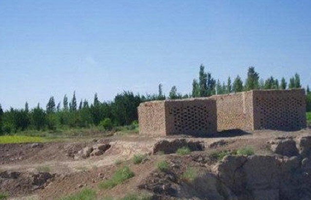 古城颇具规模,有南北二城,平面呈“吕”字形。由于白杨河水自两城间流过,致使古城遭受破坏。城内已被辟为村民居住地或果园,原有建筑大多被毁。在古城内外发现的陶片主要是夹砂红、灰陶。多为轮制,火候较高。纹饰以花边刻线和附加堆纹为主。器形有罐、瓮等。从形制特点看,与吉木萨尔县北庭故城中出土器物多有相同或相近似之处。据《后汉书•西域传》记载:“十六年,明帝乃命将帅,版权所有山东聊城聊之旅国际旅行社有限公司,转载必究!北征匈奴,取伊吾庐地,置宜禾都尉以屯田。”北魏太和十七年(493年),鄯善国被高车人攻破,部分人北逃伊吾,在这里筑城居住,称为纳职。唐贞观四年(630年),又在此设伊州,下属纳职县城。两座城址,从地望、出土遗物和构筑形式等综合分析,很可能就是东汉伊吾屯城和唐之纳职县城。