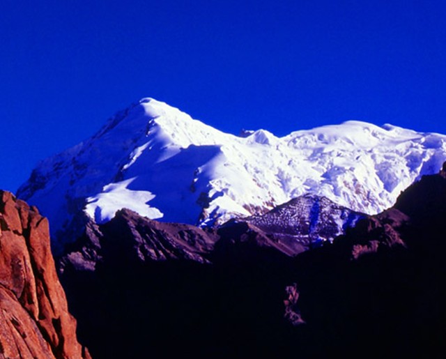 托木尔峰位于阿克苏地区温宿县境内的中国与吉尔吉斯斯坦国境线附近,属天山山脉中天山区。海拨7435.3米。“托木尔”,维吾尔语意为“铁”。其主峰及周围共10万公顷山地于1980年被列为自治区级自然保护区,主要保护高山冰川及下部森林,生物群落及生态环境。