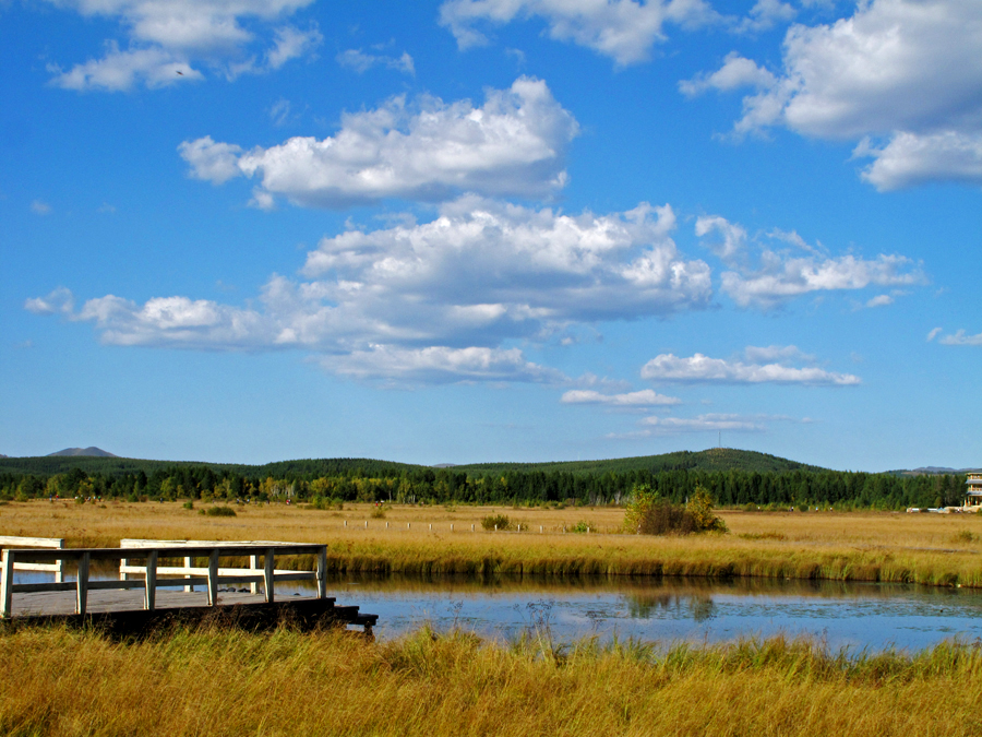 七星湖位于河北承德的塞罕坝国家森林公园内。这是一处自然风景区,在当地称为活泡子。因为我们看到水草丰美,野花遍地的水草滩,是活动的浮层,其底层仍是湖水,且整个大湖面相连,所以大大小小七个湖面实际上是一个相联的流动整体。