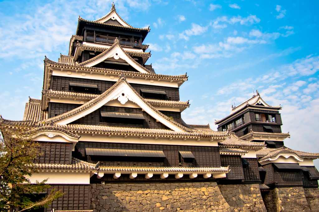 熊本城与姬路城、名古屋城并称为“日本三大名城”,别名杏城,是武将加藤清正自1601年开始用了7年时间建成的。熊本城气势豪壮,占地周长12公里,以天然河流作城壕,垒巨石为城垣。在西南战争时,面对西乡隆盛率领的勇猛的萨摩军,熊本城坚守近两个月而没有被攻下,展现了其真正的价值。