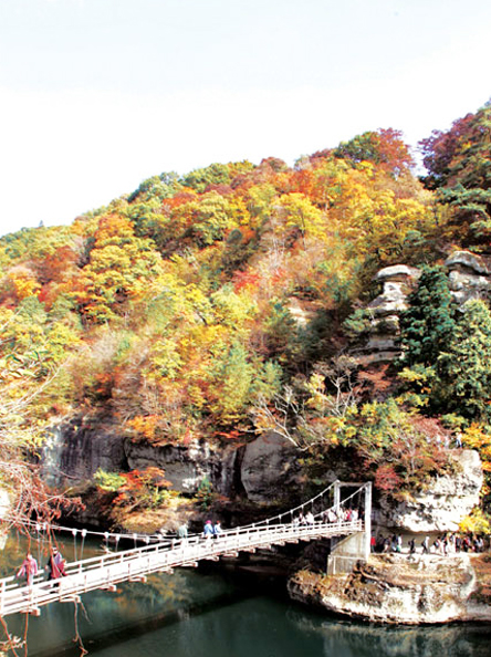 妙义山与赤城山、榛名山一起被称为“上毛三山”,日本三大奇胜之一,分为南侧的表妙义和北侧的里妙义。
