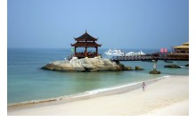 亚龙湾位于中国最南端的热带滨海旅游城市——三亚市东南28公里处,是海南最南端的一个半月形海湾,全长约7.5公里,是海南名景之一。亚龙湾沙滩绵延7公里且平缓宽阔,浅海区宽达50-60米。沙粒洁白细软,海水澄澈晶莹,而且蔚蓝。能见度7-9米。海底世界资源丰富,有珊瑚礁、各种热带鱼、名贵贝类等。年平均气温25.5°C,海水温度22-25.1°C,终年可游泳,被誉为“天下第一湾”。
