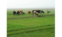 禾木草原位于布尔津县喀纳斯河与禾木河交汇区的山间断陷盆地中,海拔1124~2300米。盆地周围山体宽厚,顶部呈浑圆状,河流多切割为峡谷,地形复杂,禾木河自东北向西南贯穿其间,将草原分割为两半,山地阳坡森林茂密,苍翠欲滴,马鹿、旱獭、雪鸡栖息其间;而阴坡绿草满坡,繁花似锦,芳香四溢,蜜蜂在采花酿蜜,牛羊满山遍野觅食撒欢,一派迷人的广袤草原景色。