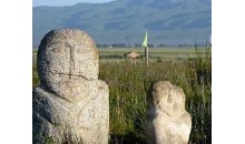 三海子墓葬及鹿石位于新疆维吾尔自治区青河县查干郭愣乡三海子夏牧场,为青铜时代的一处墓葬,距今约4000年。在面积约16.25平方公里地域的四个分布区内计有石围石堆墓、石棺墓30余座,鹿石19通。什巴尔库勒石围石堆墓,石堆直径78米,残高25米;石围直径210米,宽3~5米。石堆与石围之间有四条片石铺成的通道,最宽的通道达1.6米。墓环水而建,气势宏伟,结构独特,是欧亚草原少有的特大规模墓冢之一。
